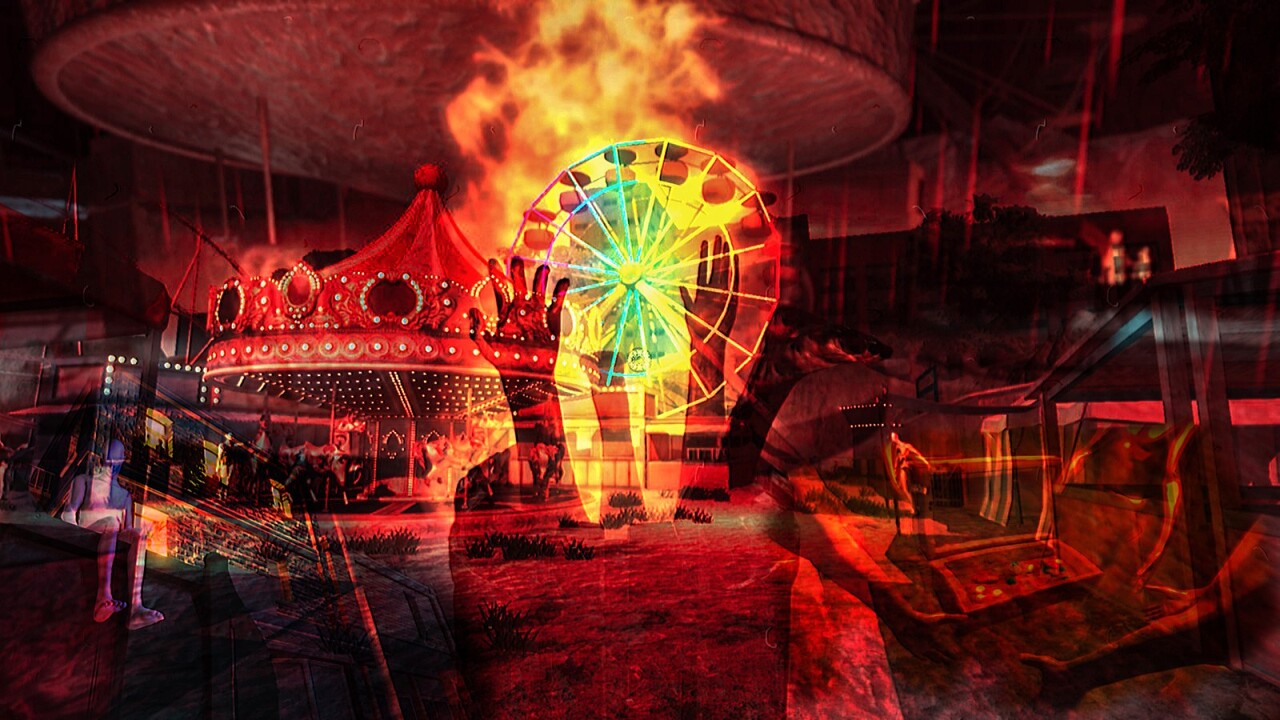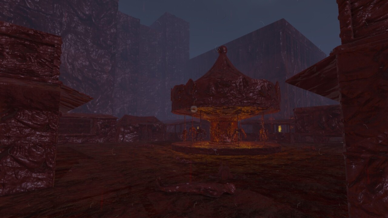 마지막으로 전쟁터의 참상이 그대로 투영된 듯한 피범벅된 놀이동산이 보이는군요.