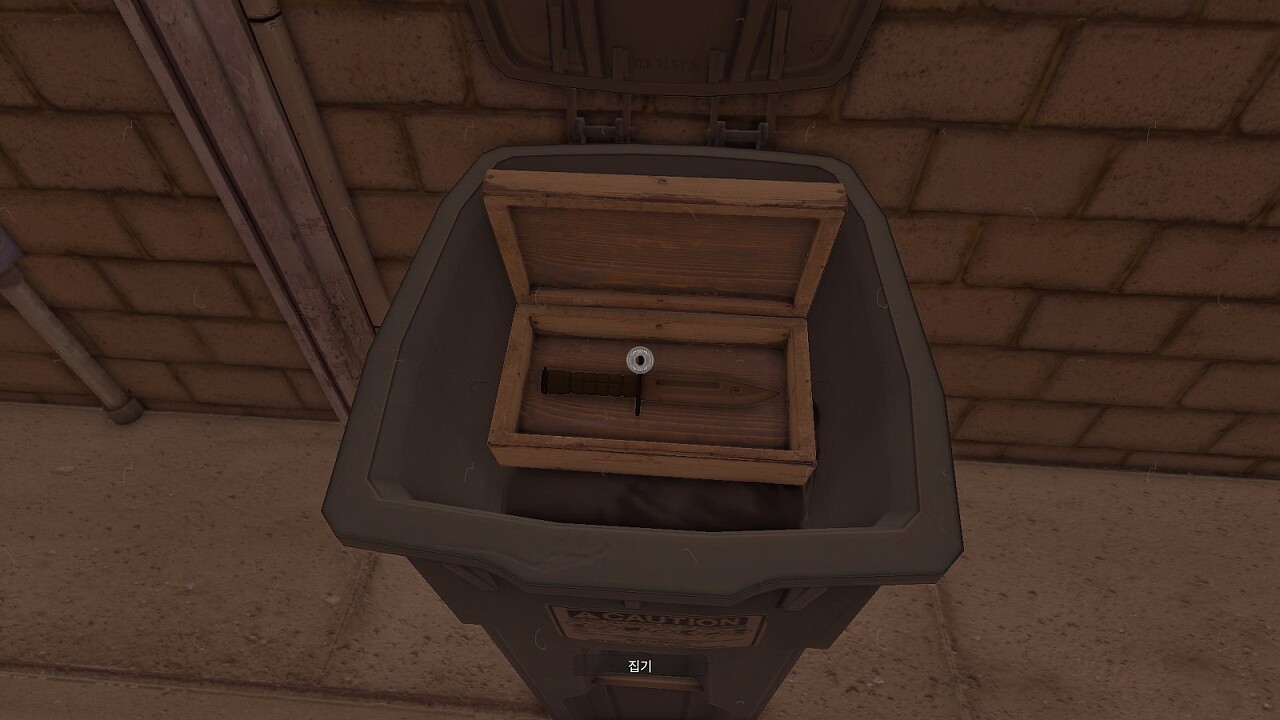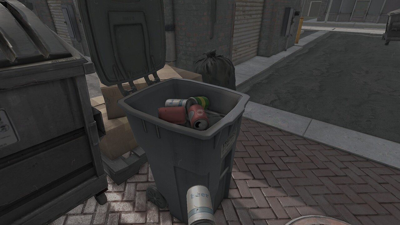 그리고 쓰레기통 속에서 깡통을 발견해 주울 수 있는 상호작용 요소만이 존재합니다.