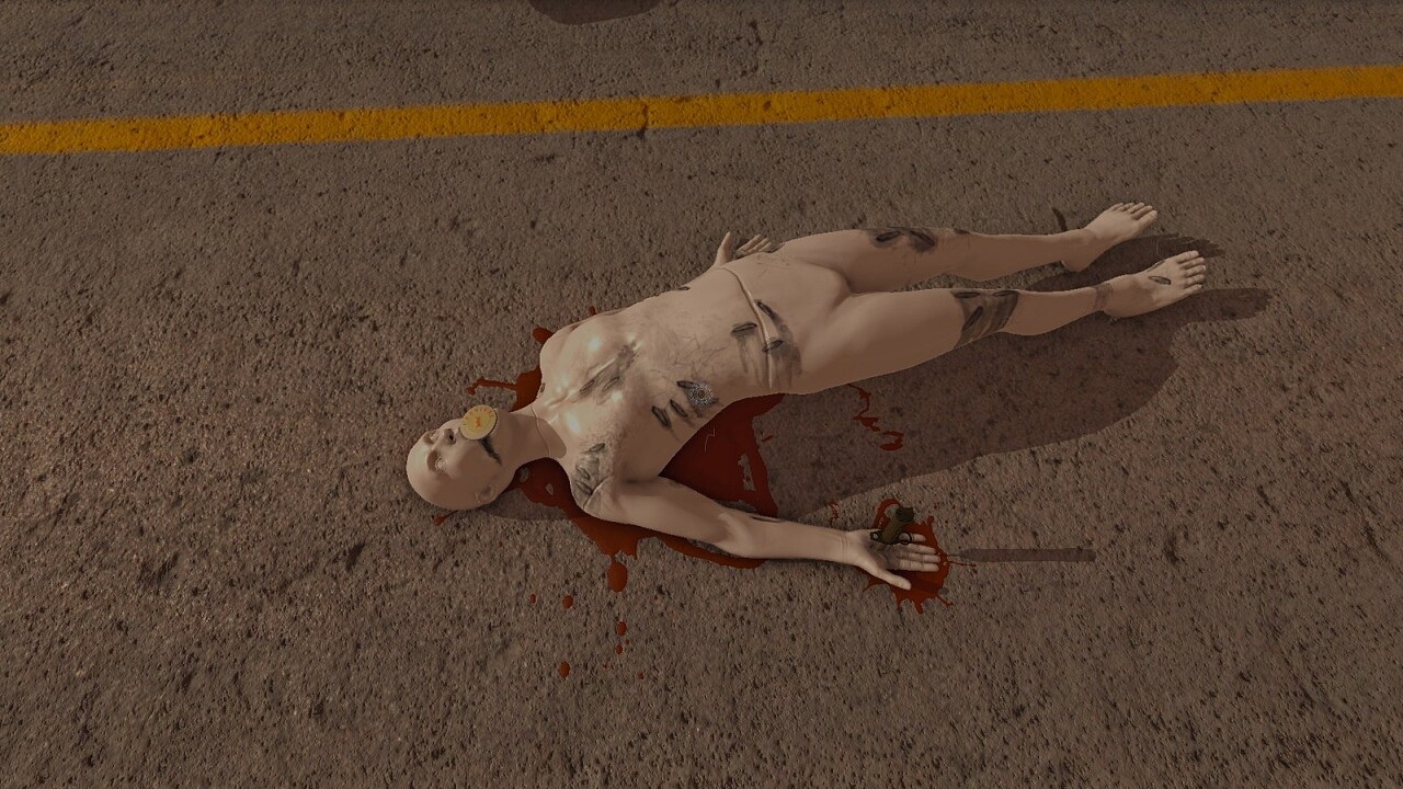 대검을 들고 바닥에 누워 있는 상처투성이 마네킹의 손을 찌르자, 마네킹이 입에서 웬 토큰을 토해냅니다.