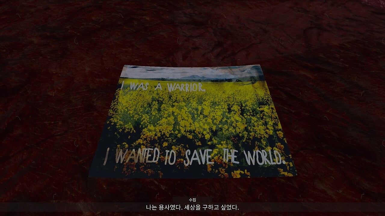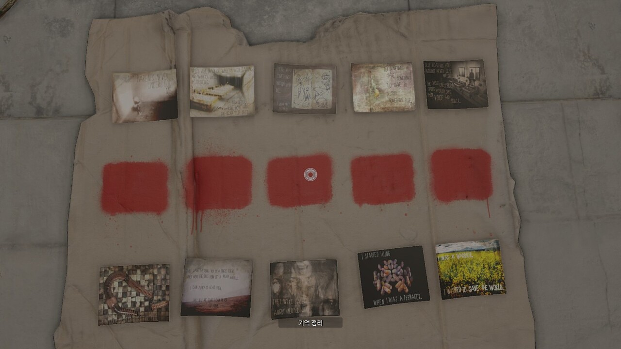 - 누구를 구하고 누구를 파괴해야할지, 그걸 잊어버렸다. 좋았던 기억도, 안전하다고 느낀 기억도 없다. (TRUE)