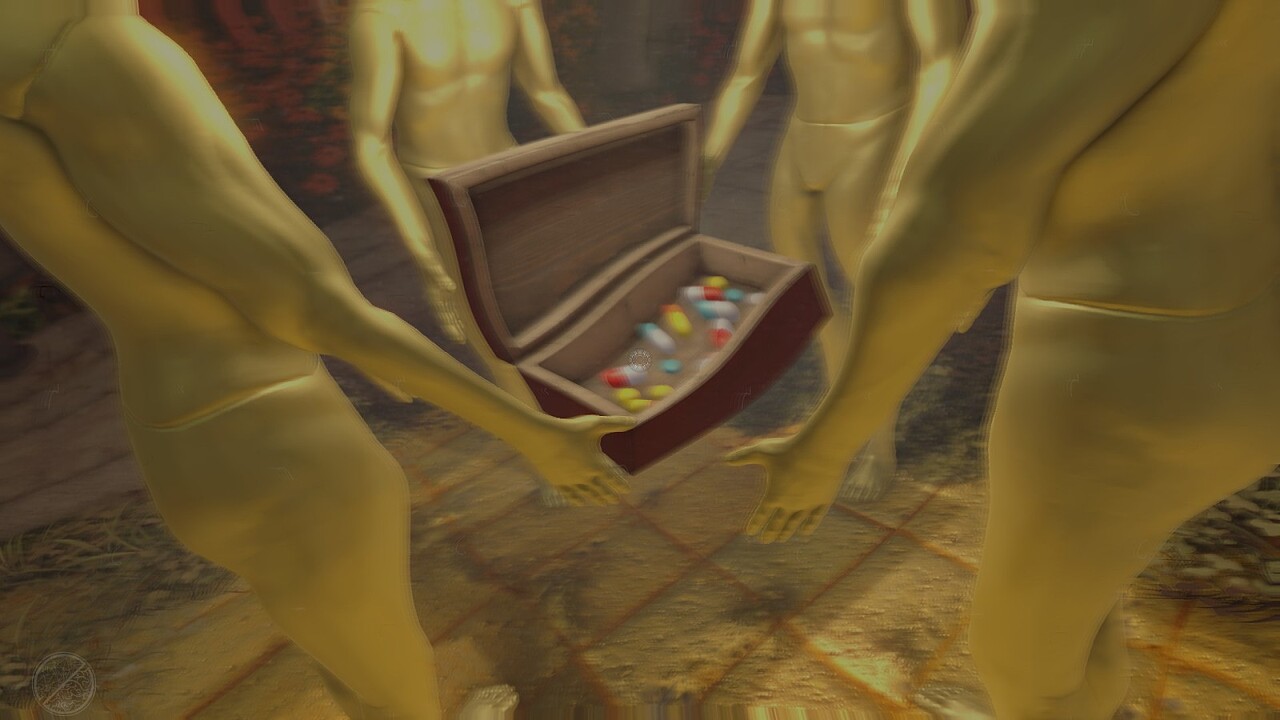 비밀번호를 입력하자 이번엔 약상자를 든 마네킹들이 보입니다.