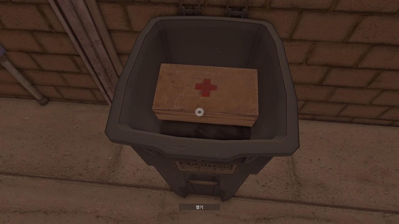 다시 쓰레기통을 뒤져 보니 이번에는 구급 상자가 보이는군요.